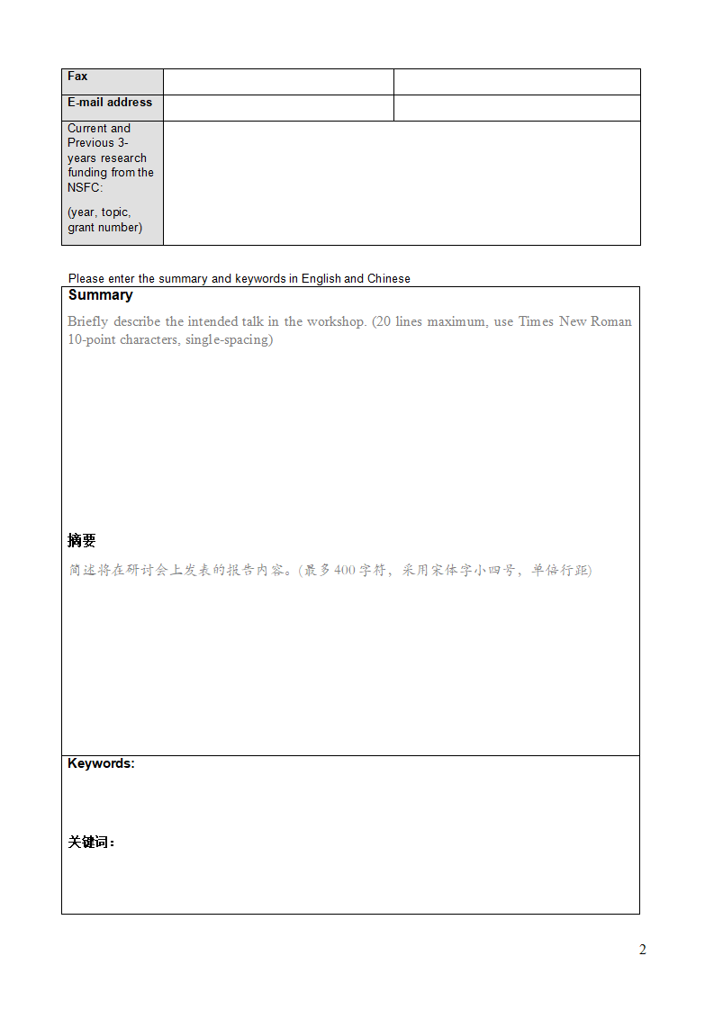 申請人須提交一份申請書,模版見附件(請依據申請書格式填寫相關內容)。