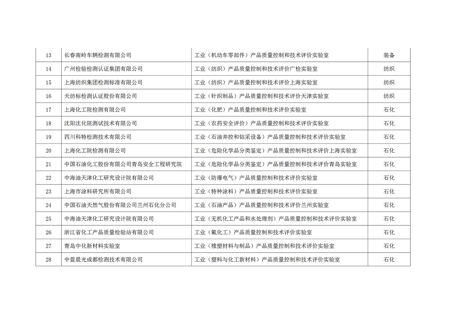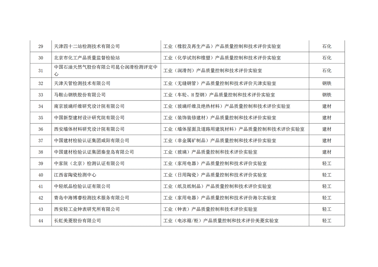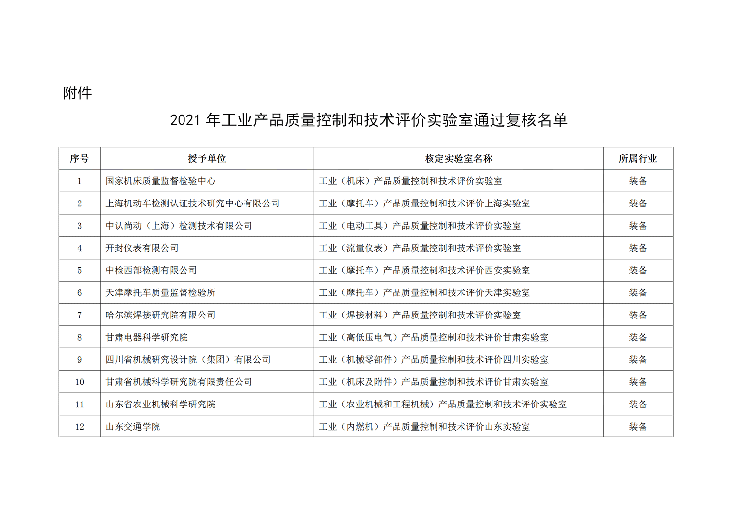 附件:2021年工業(yè)產(chǎn)品質(zhì)量控制和技術(shù)評價實驗室通過復(fù)核名單