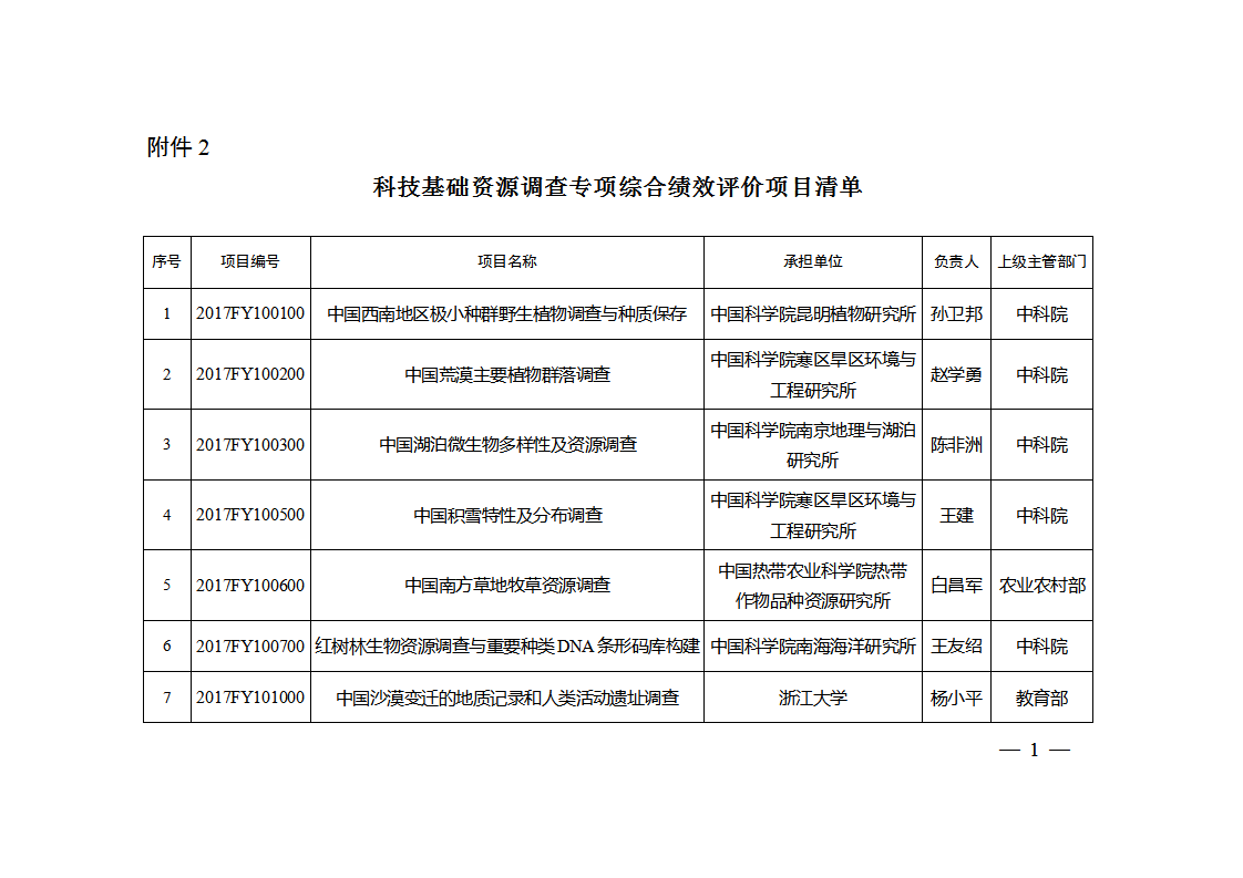 附件:1. 科技基礎性工作專項綜合績效評價項目清單