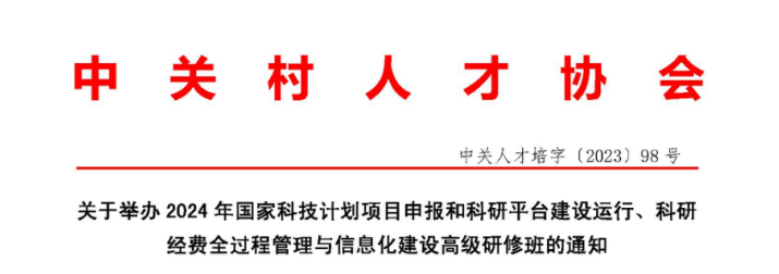 關于舉辦2024年國家科技計劃項目申報和科研平臺建設運行、科研經費全過程管理與信息化建設高級研修班的通知