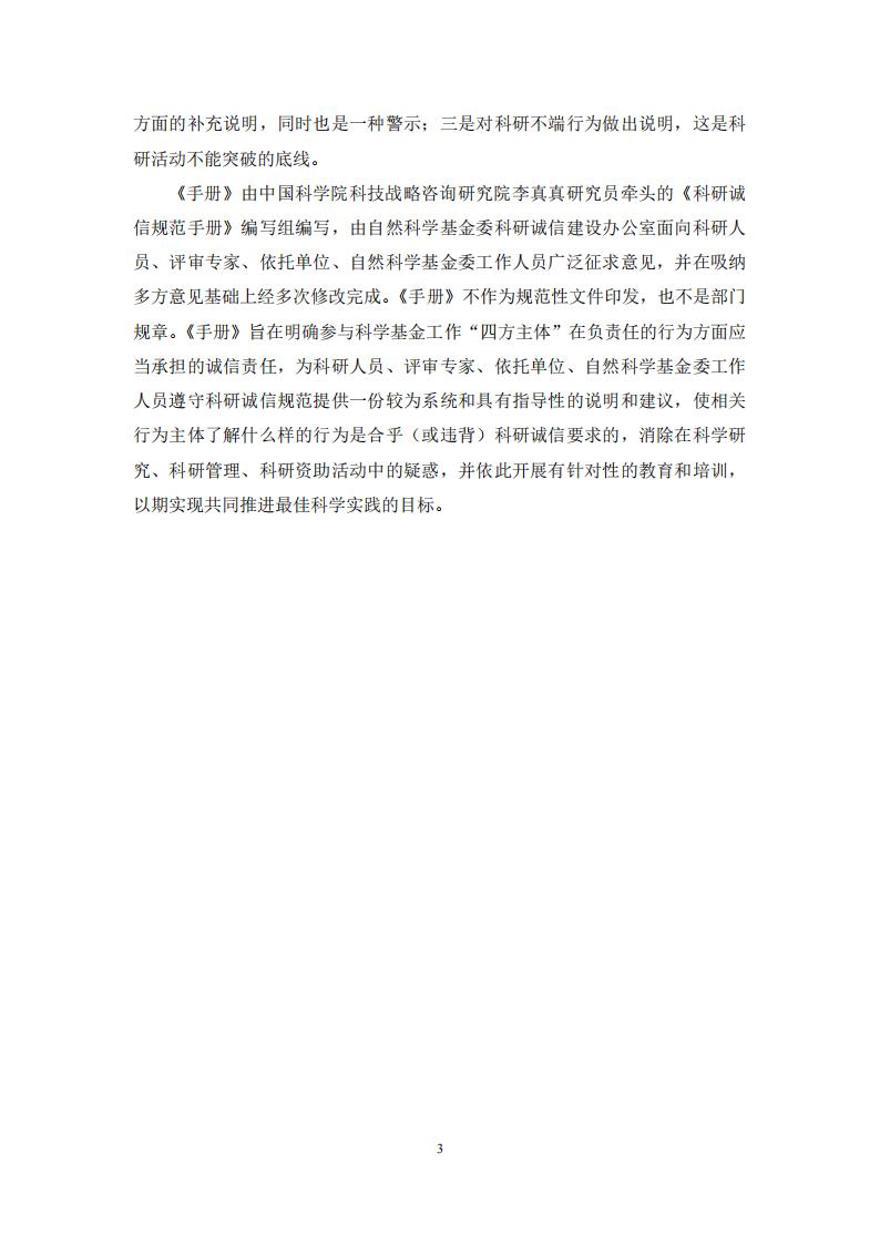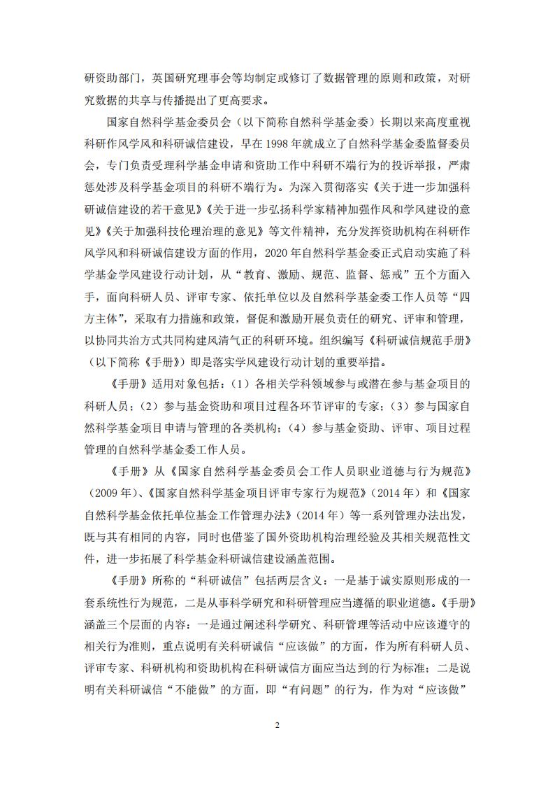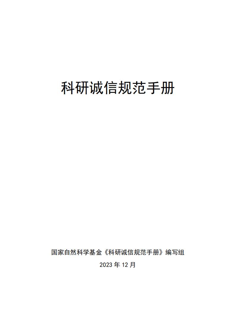 國家自然科學基金委|關于發布《科研誠信規范手冊》的通知