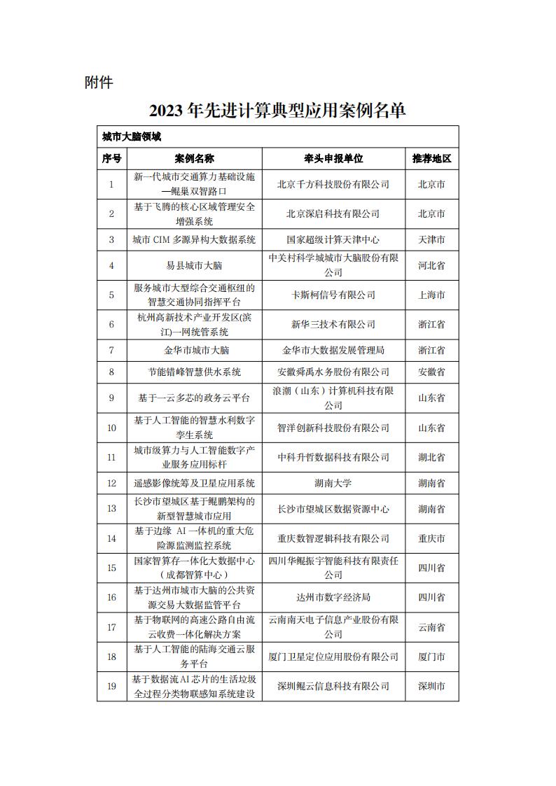 工信部|關(guān)于公布2023年先進計算典型應用案例名單的通知