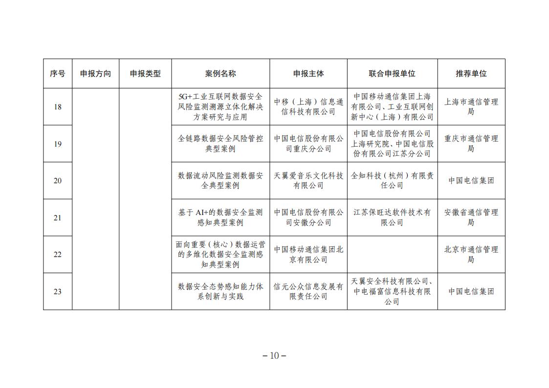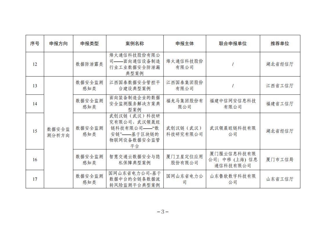 關于2023年工業和信息化領域數據安全典型案例名單的公示