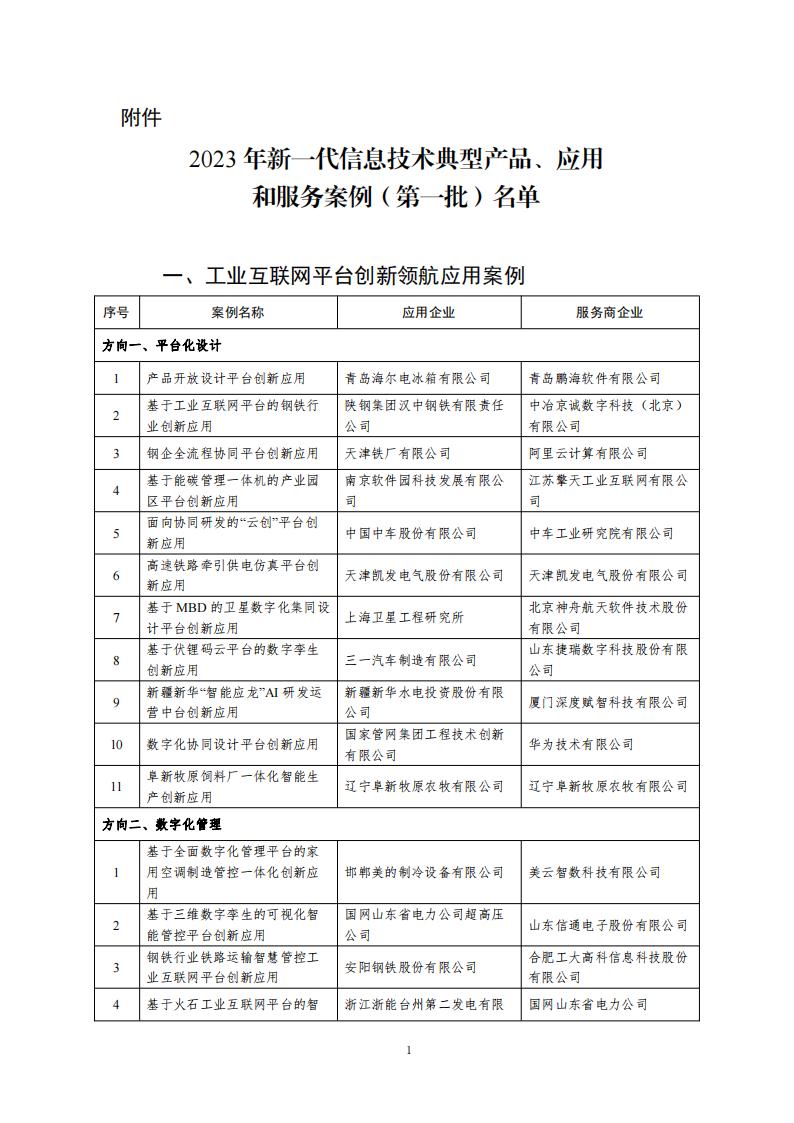 關于2023年新一代信息技術典型產品、應用和服務案例(第一批)名單的公示