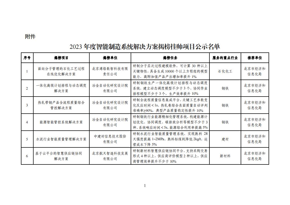 關于2023年度智能制造系統解決方案揭榜掛帥項目的公示