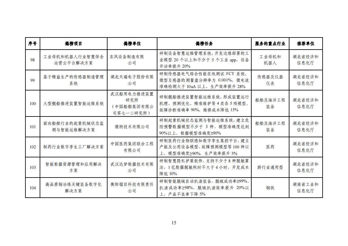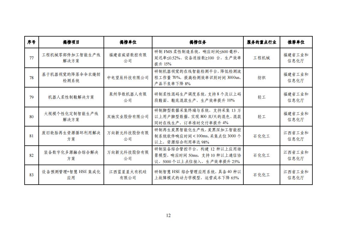 根據《關于開展2023年度智能制造系統解決方案揭榜掛帥項目申報工作的通知》(工信廳聯通裝函〔2023〕274 號),現將擬入選的2023年度智能制造系統解決方案揭榜掛帥項目名單進行公示,請社會各界監督。如有異議,請在公示期內將意見書面反饋至工業和信息化部裝備工業一司(智能制造處)。