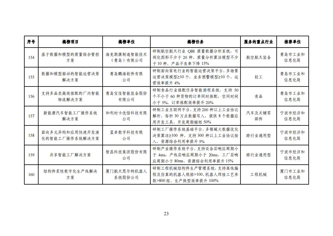 工信部|2023年度智能制造系統解決方案揭榜掛帥項目公示