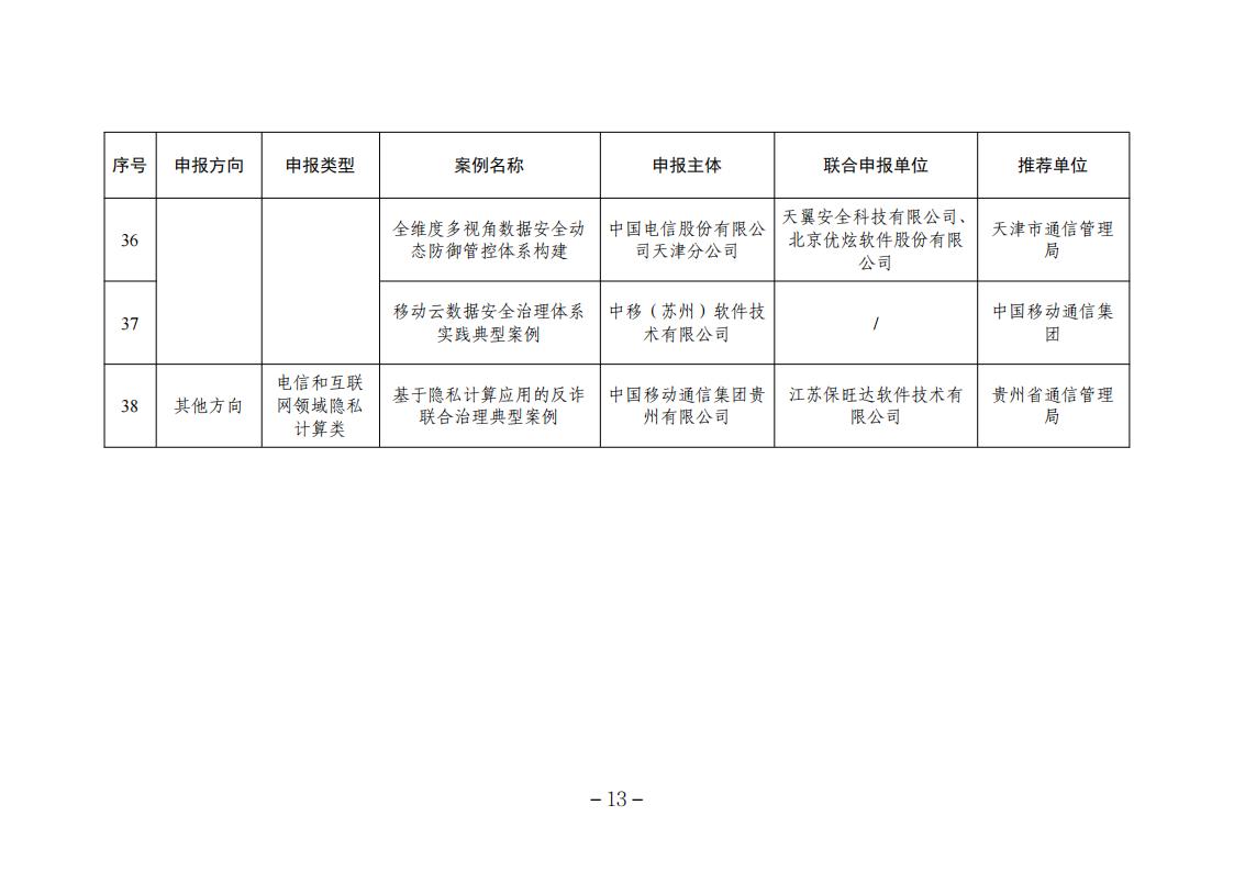 根據《工業和信息化部辦公廳關于組織開展2023年工業和信息化領域數據安全典型案例遴選工作的通知》(工信廳網安函〔2023〕266號),經申報推薦、形式審查、專業初審、專家評審和網上公示,確定了2023年工業和信息化領域數據安全典型案例名單,現予以公布。
