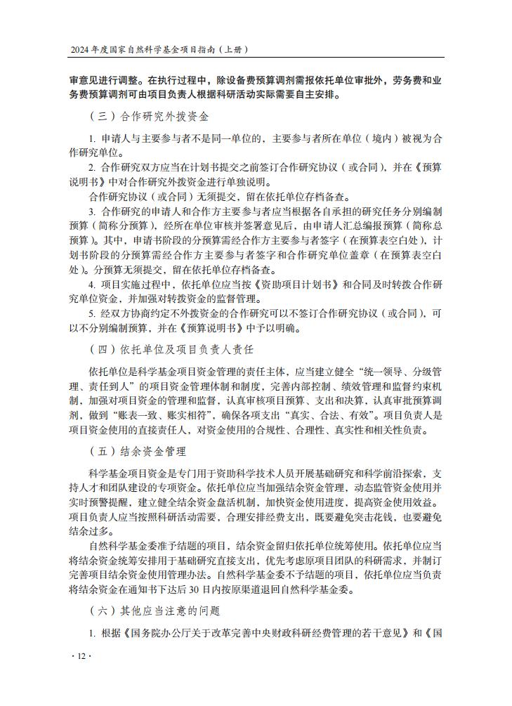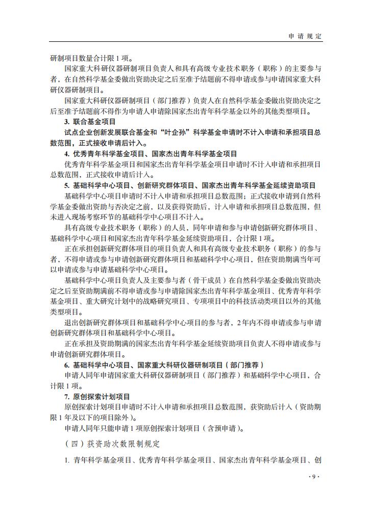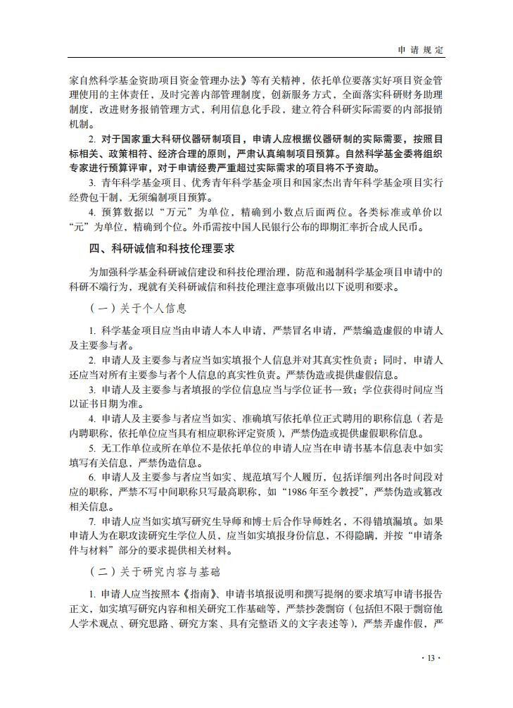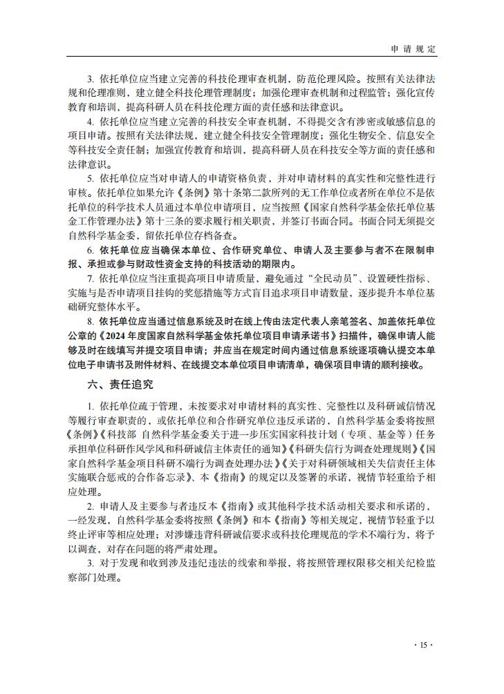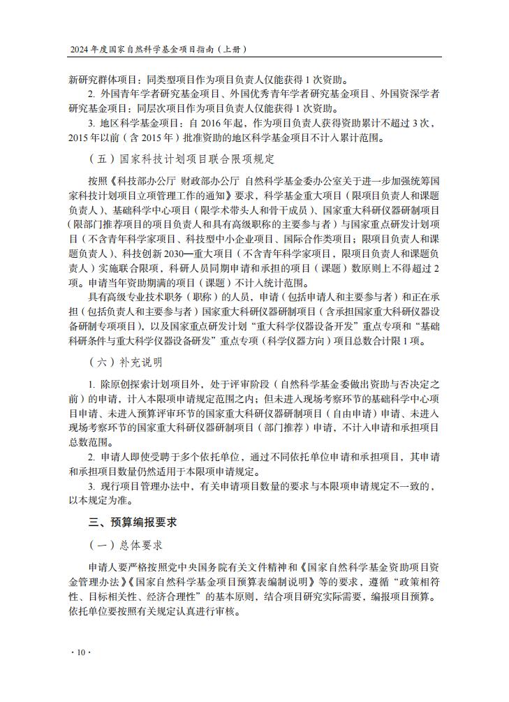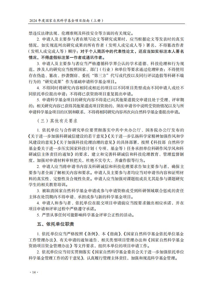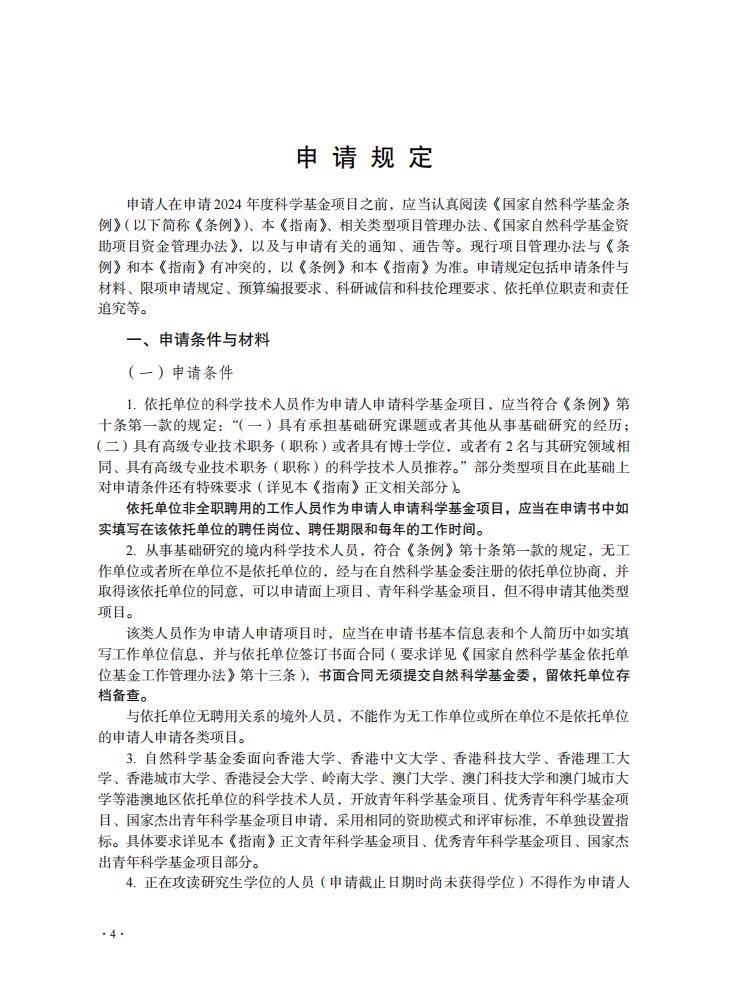 申請規定-節選自《2024年度國家自然科學基金項目指南》