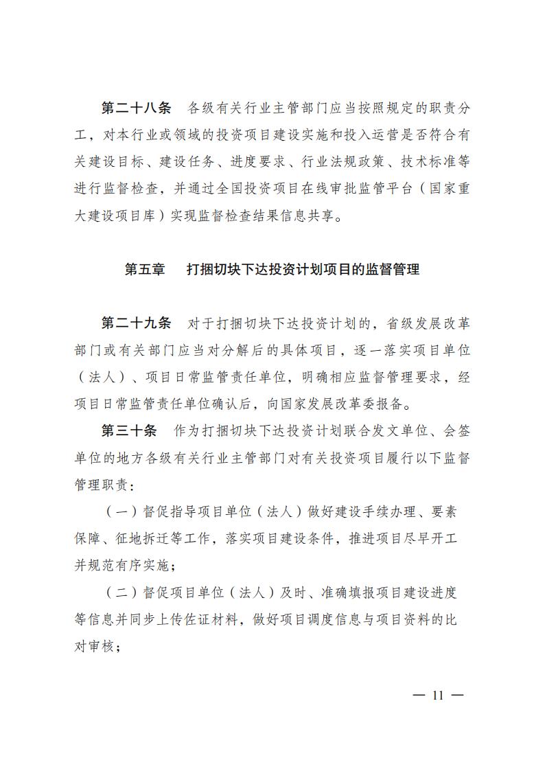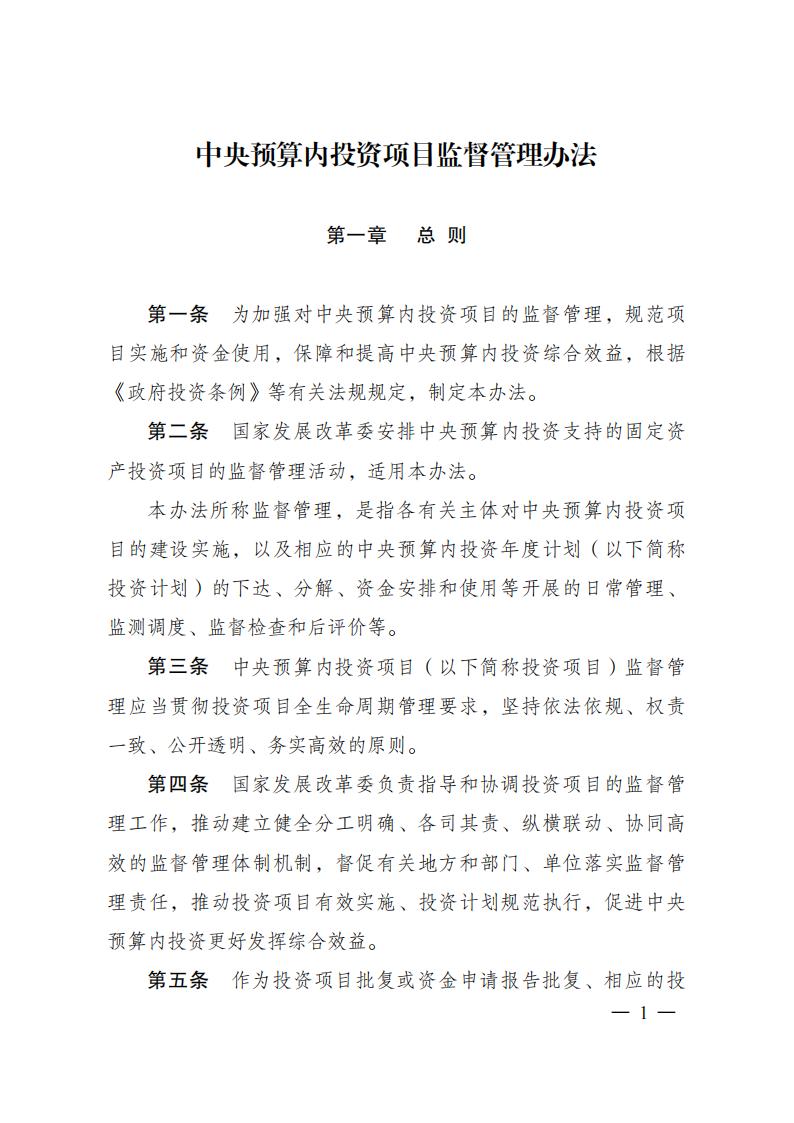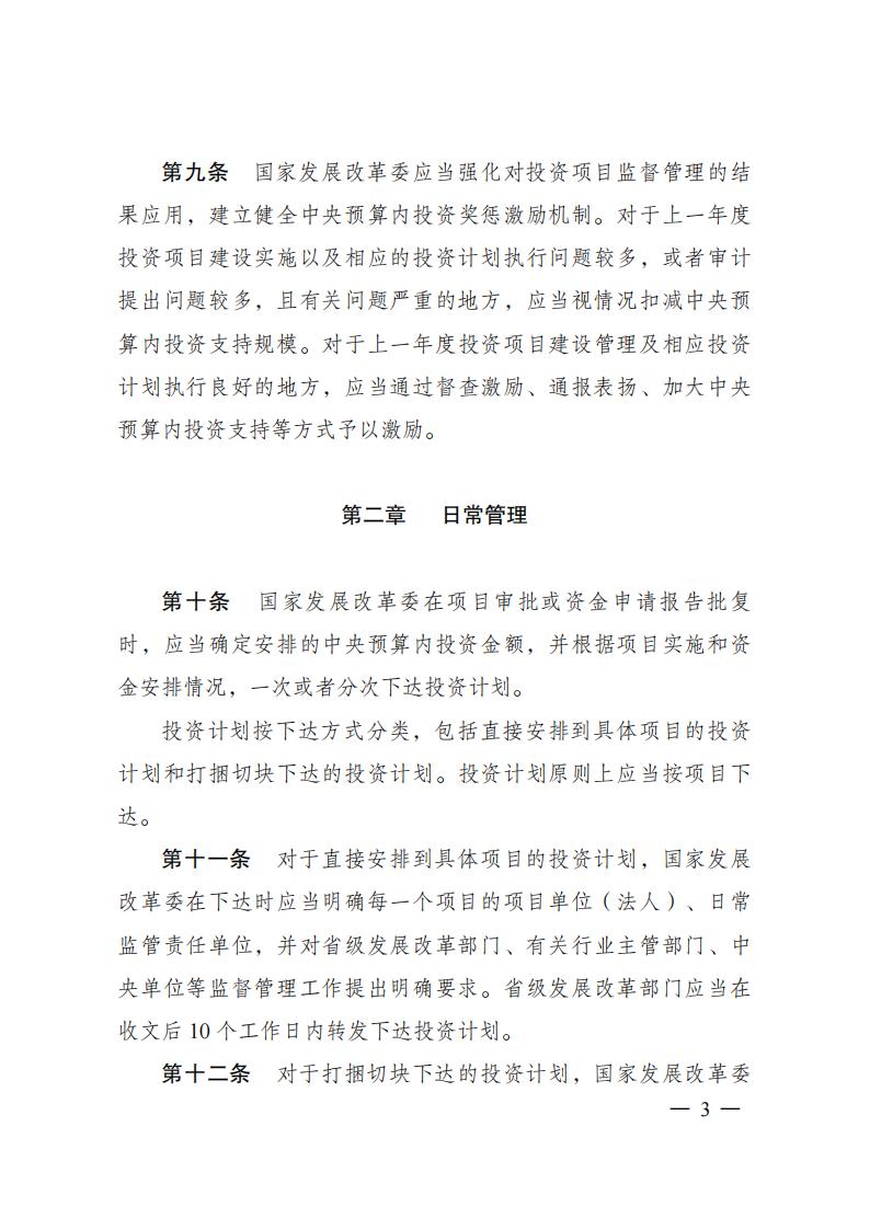 《中央預算內投資項目監督管理辦法》 2023年第10號令