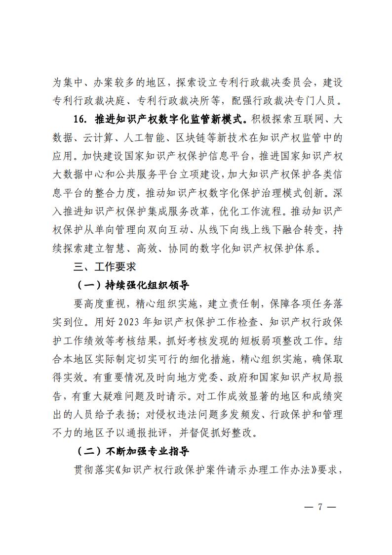 國家知識產權局|關于印發2024年全國知識產權行政保護工作方案的通知