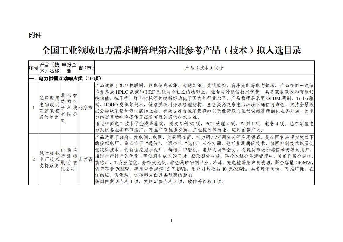 附件:全國工業領域電力需求側管理第六批參考產品(技術)擬入選目錄