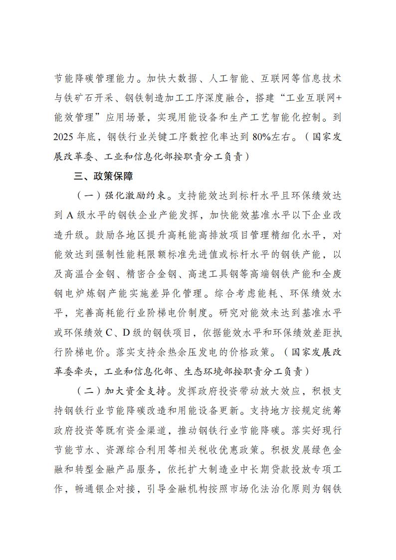 國家發(fā)改委等五部門關(guān)于印發(fā) 《鋼鐵行業(yè)節(jié)能降碳專項行動計劃》的通知