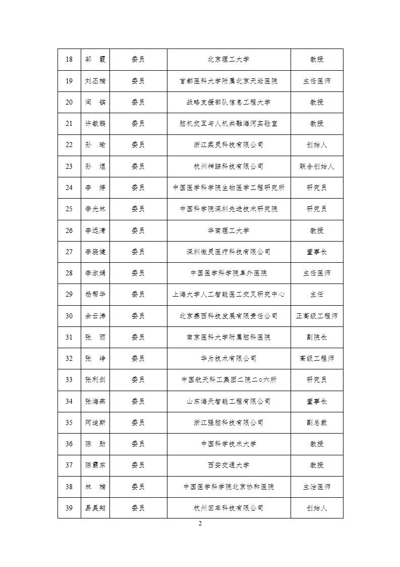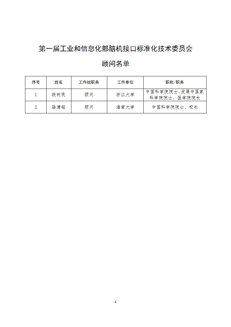 工業和信息化部腦機接口標準化技術委員會委員名單公示