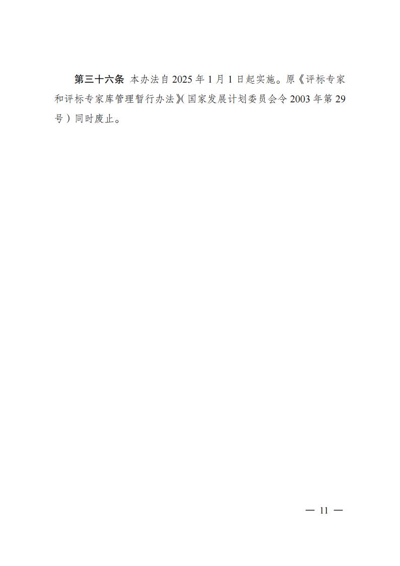 國家發(fā)改委|《評標專家和評標專家?guī)旃芾磙k法》 2024年第26號令