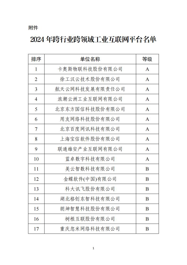 2024年跨行業(yè)跨領域工業(yè)互聯(lián)網(wǎng)平臺動態(tài)評價結果公示